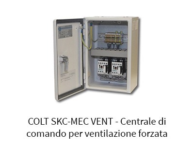 Centrale di comando elettrica modello COLT SKC-MEC VENT utilizzata sia per la ventilazione giornaliera meccanica che per l’evacuazione di fumo e calore forzata in caso di incendio.
